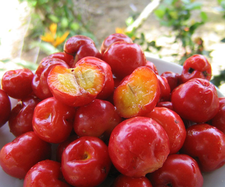 L’acérola est comestible et largement consommé, de goût acidulé et agréable l’acérola est cultivé entre autre pour sa haute teneur en vitamine C, peu de temps après la floraison les fruits de l’acérola de l’année précédente arrivent à maturité, au Antilles l’acérola est consommé de différentes façon, en fruit naturel, en confiture d’acérola ou sous forme de jus d’acérola, l’acérola est le deuxième fruit le plus riche en vitamine C, il en contient 20 à 30 fois plus que l’orange.